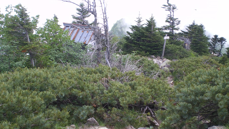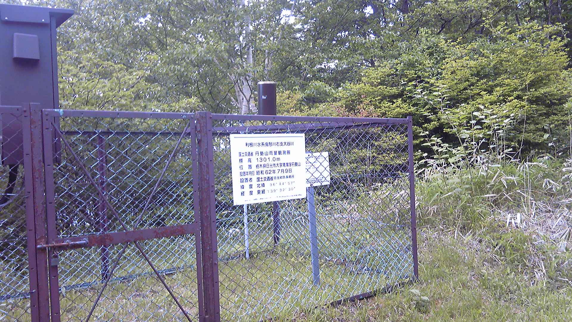 30~40分登ると、はっきりした目標物である雨量測定所の横を通った。測定機器は付けたしみたいなもので、アンテナと電気設備だけが目立って基地局みたいだった。もちろん、こんなところに携帯基地局はいらない。