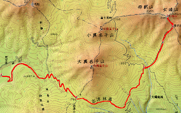 登りでは左ひざが痛くなって心配だったが、その後気をつけて歩いたので痛みがひどくなることはなかった。とはいえ、この日の最高標高は1765m。翌日予定している赤薙山は2000mを超える。