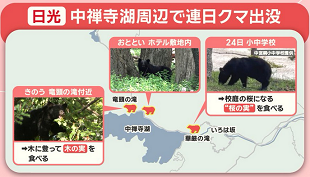 日光市は何より自然と野生動物が大切です。観光客なんか来なくても構わないんですというなら仕方ないが、海外客の集客にはたいへん熱心で「癒し空間整備」とか言っているのである。クマの縄張りが拡大すれば、いずれ住宅地にも入って来る。クマは、いろは坂の上か下かなんて考えない。住民が困るまで何も対策をとらないのだろうか。