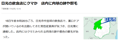 6月に学校やホテルに現れた中宮祠のクマは7月になっても国道近くから離れないようで、今度は飲食店に侵入して置いてあった肉をエサにしたようだ。