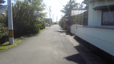 極楽寺から三番金泉寺まで、遍路地図によると2.6km、本日1番の長丁場である。しかも炎天下、油断することはできない。幹線道路から離れて裏道を行くようだが、極楽寺を出たところから「四国のみち」の道しるべがあるのでそれほど迷うことはない。
