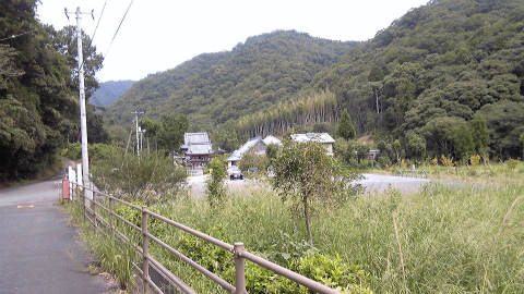 十番切幡寺に話を戻すと、遍路道はスモトリ屋の前を通って、再び徳島自動車道の高架下をくぐる。すでにかなりの傾斜があるので、歩くのに骨が折れる。寂しい門前町の後は、舗装はしてあるものの草むらの間を通るひと気のない道である。女性に人気の札所というのでもっと華やかなところを予想していたけれど、ちょっとそういう雰囲気ではない。