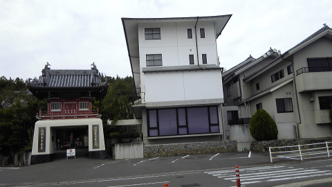 時刻はまだ11時20分、前日に「うどん萌月」のご主人から聞いたタイムリミットである12時には余裕がある。とりあえずトイレへ。ここのトイレに行くには納経所の横、お寺さんの庫裏の横を抜けていく。庫裏は宿坊でもできそうなくらい大きかった。トイレの横からみると、庫裏のすぐ隣が駐車場となっている。お寺の関係者であれば、三百何十段の石段を上がらなくても車で来れるようだ。