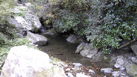弘法大師が水垢離したとされるこり(垢離)とり川。川底が岩盤になり、流れもゆるやかになっている。