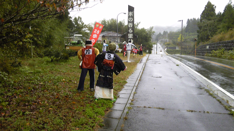 カップヌードルカレー味とポテトサラダ、牛乳で朝ごはん。身支度は山歩きの時と同じで、オーロンのアンダーシャツと冬ズボン、下にCW-X。登山用のシャツの上から新規に調達した「いっぽ一歩堂」の袖なし軽装白衣を羽織る。寒くはなかったので防寒兼用のレインウェアは着なかったが、まだ外は真っ暗なのでヘッデン(登山用ヘッドランプ)を用意して4時半に出発した。