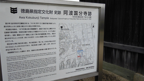 境内に置かれていた説明板を読むと、かつて、奈良時代に置かれていた国分寺の領域は周辺の住宅地も含む広さであり、現在の国分寺は当時の何分の1の規模しかないそうである。それでも、本堂と大師堂、納経所は広々として境内にはかなりの空間がある。「四国遍礼霊場記」には、荒廃して礎石と本堂のみが残り、旅の僧(乞食坊主?)が住んでいるだけと書いてあるから、江戸時代初期にはそういう状況だったのだろう。