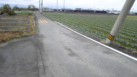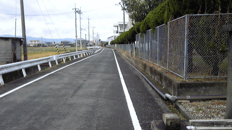 右に折れるはずなのだが、右側には延々と施設のフェンスが続く。右折する場所を見逃したかと不安になるほどまっすぐである。