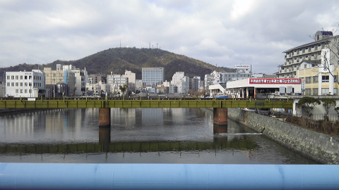 歩き始めはJR徳島駅。ビルの向こうから眉山が見えます。