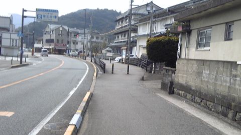 ドライブイン海賊船&へんろ休憩所を過ぎて、いよいよ日和佐市街に近づいてきた。さて、日和佐というのはウミガメで有名であり、港町だとばかり思っていたのだが、道の両側に建物が増えてくるようになっても、左にも右にも山、そして市街地の向こうにも山が見える。海はいったいどの方向にあるのだろう。