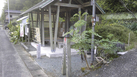 遍路地図には、国道56号線沿いに天神へんろ小屋があると書かれているのだが、清滝寺へのハイキングコースを示す標識にしたがって進むと、この小屋にはぶつからない。代わりにあるのは、国道から折れてすぐの駐車場にある「笹岡ハイヤー休憩所」である。