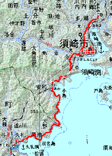 多ノ郷からは須崎の街中を歩く。須崎は大きな街で、国道沿いにコンビニやドラッグストアが結構ある。日焼け止めとシェービングフォーム、カロリーメイトなどをこちらで買う予定にしてあったので、地元ドラッグストアの後ローソンに寄ってようやく全部そろった。天気は下り坂でぽつぽつ雨粒が落ちてくるが、まだ雨具を用意するほどではない。