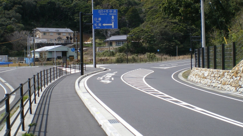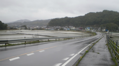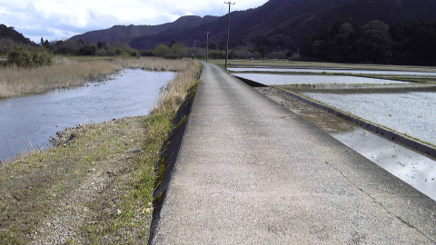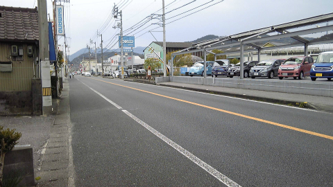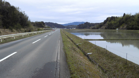 何ヵ所かで道幅を広げたり舗装を直したりしていて、そのため脇道が通れなくなっていたのかもしれない。とはいえ、遍路地図でみるほどにはカーブで距離を損しているという気もしなかったので、県道を道なりに歩いても特に問題はない。