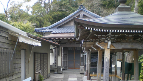 鐘楼からすぐ先に本堂があり、外部とは網戸で仕切られている。「まむしが入るので、必ず戸を閉めてください」と書いてある。なるほど、本堂の裏手は薮だし、すぐそばが海で水気もあるので蝮がいてもおかしくないシチュエーションである。私も嫌なので、きちんと閉めて久しぶりの読経。