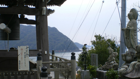 振り返ると、海が見える。弘法大師が海難が多いのを憐れに思ってこの寺を開いたという。
