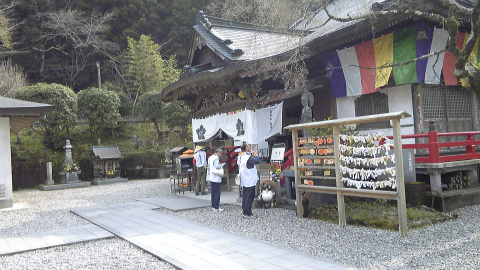 石段を下り、山門レベルにあるトイレと休憩ベンチで身支度を整えた後、角を曲った会館にご朱印をいただきに行く。会館は(あまり大々的に宣伝していないが)宿坊も兼ねているようで、鉄筋の立派な建物である。ちょうどお昼になったので心配だったが(ある札所でお昼休みに納経・御朱印をやめ、それがもとで八十八ヵ所霊場会を抜けたのは、この年の話である)、ちゃんとご朱印をいただくことができた。