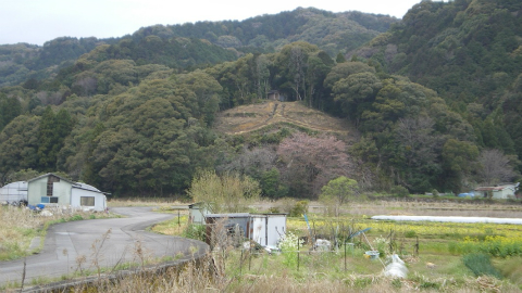 海岸から見える丘のすぐ裏が大岐の集落。砂浜が近いのに水田が開けている。