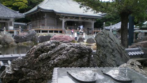 山内には多くの施設があると真念「道指南」にも書いてあるので大きな境内を想像していたら、意外とコンパクトである。中央に池があり、その周囲にお堂が配置されている。入って正面が本堂、左に折れて大師堂、さらに奥に庫裏が続いている。池を挟んで本堂の反対側には仏足石がある。