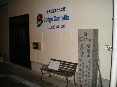 再び国道と合流するところに、ロッジカメリアがある。歩き遍路専用宿だが、最近自転車遍路も認めているそうだ。