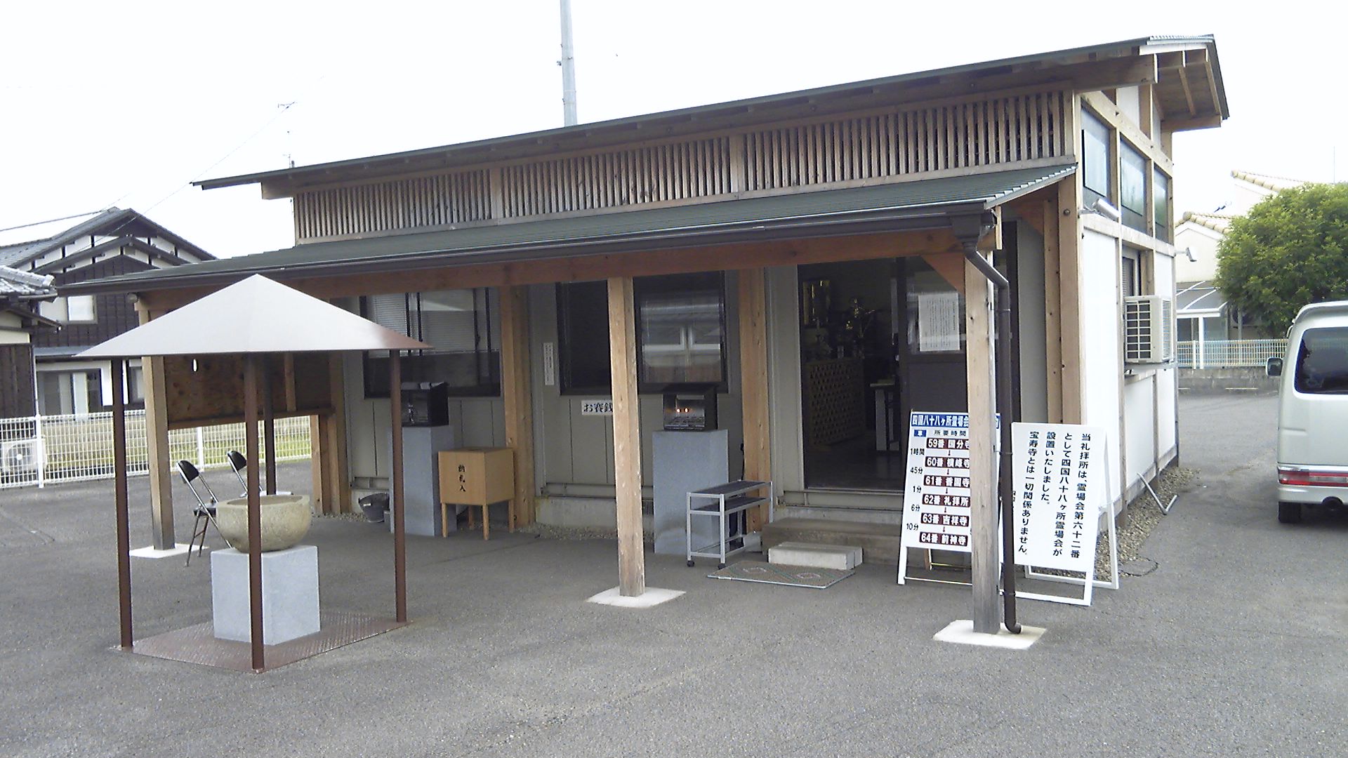 さて、六十二番札所については、現在、霊場会が香園寺山門近くに礼拝所を置き、ここで納経を受け付けている。併せて、前後いくつかの札所には、礼拝所で納経を受け付けるので、六十一番香園寺→六十二番礼拝所→六十三番吉祥寺とお参りするよう案内板で注意喚起を行っている。