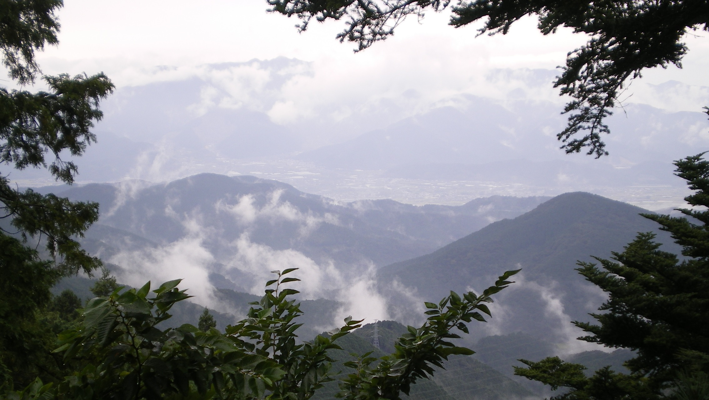 小松の街が近づき、うっすらと横峰前衛の山々が見えてきた。この後雨になり、翌日の横峰寺はきびしい登りとなった。