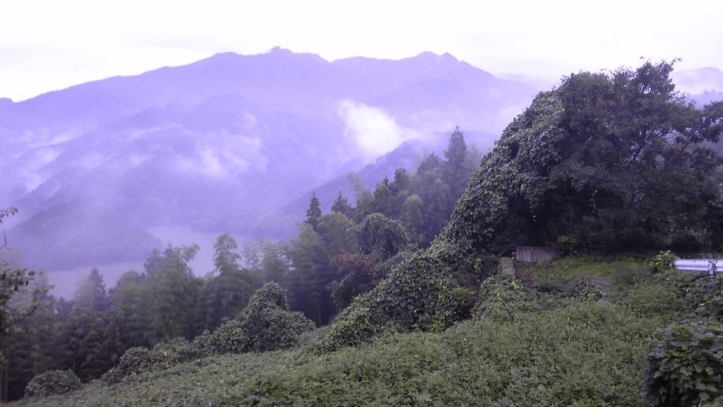 右手の稜線は、新長谷寺から三角寺に向かう。伊予三島まで、ゆるやかに坂を下って行く。