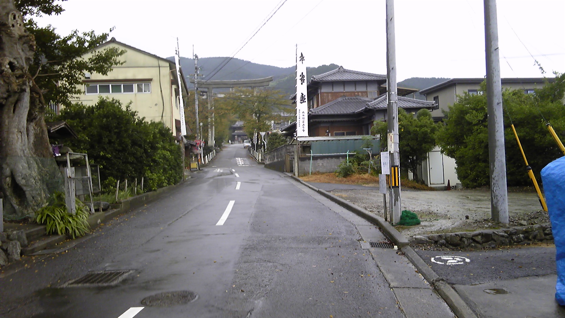 バス停近くのセブンイレブンへ寄って買い物をし、いよいよ伊予三島に向けて歩き始める。前日から、歩いていると方々で太鼓の音がした。どうやら秋祭りのようで、このあたりは山車を引いて収穫を祝うようだ。まだ時間が早いので太鼓は鳴らないが、山車を格納してある場所やスポンサーの名前を貼り出した掲示板がある。この日は土曜日、お祭りもたけなわだろう。