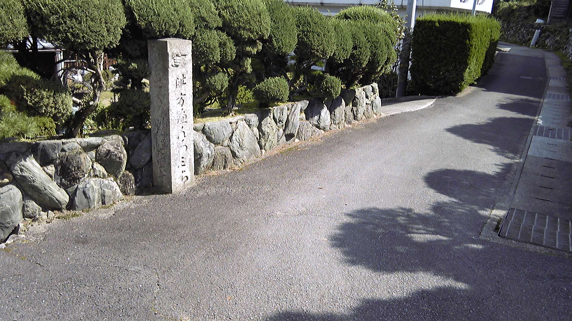 戸川公園から上も、遍路地図を見るとすぐ山道になるように思えるが、かなり上まで民家が続く。路面もしばらくは舗装道路が続くので、そんなに心配するほどのことはなかった。これまでと同様、辻辻に標石や丁石があるので古くから使われた遍路道であることは間違いない。