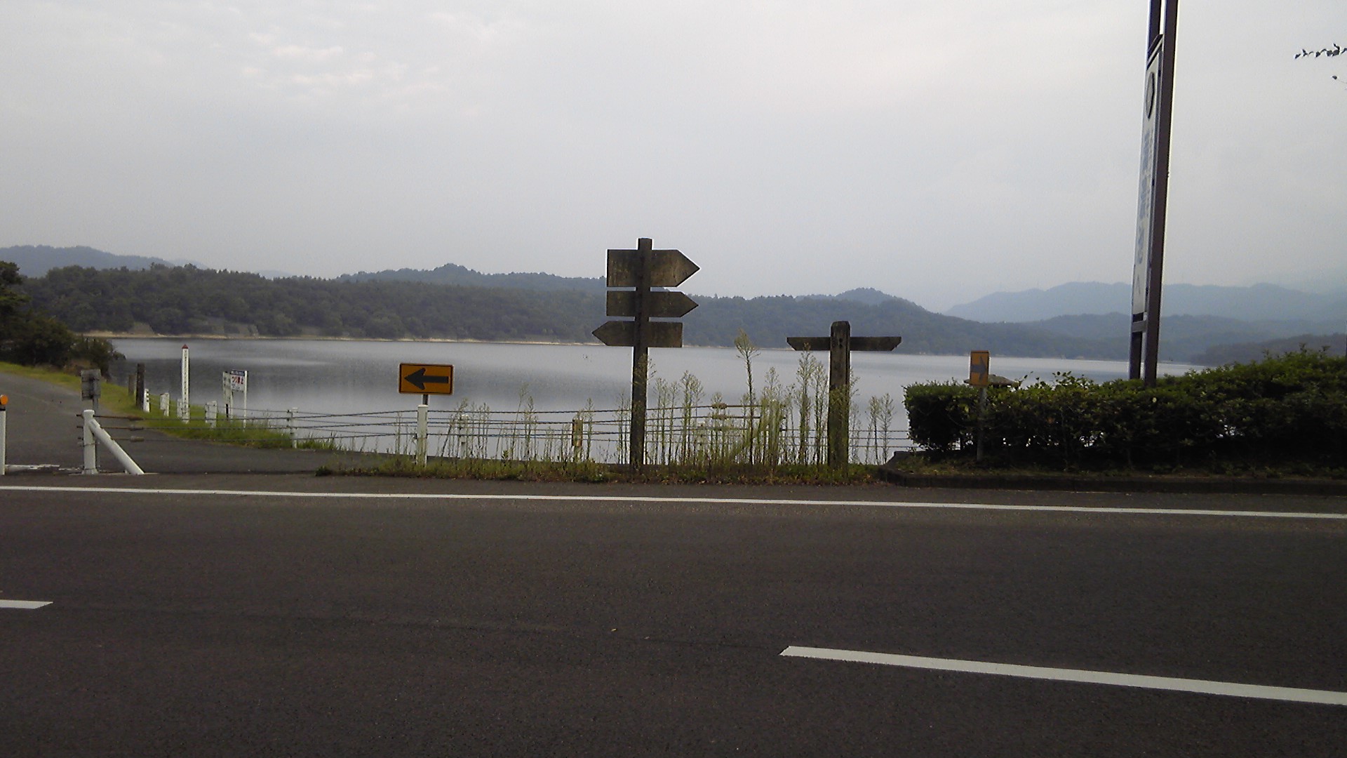 この日は9月30日だが、まるで夏のように蒸し暑く、歩くそばから汗が噴き出してくる。満濃池はアースダムなので、平地ではなく山沿いにあるはずだ。先に見えている稜線のあたりだろうか。別格霊場のため道案内がないので、遍路地図と方角が頼りである。