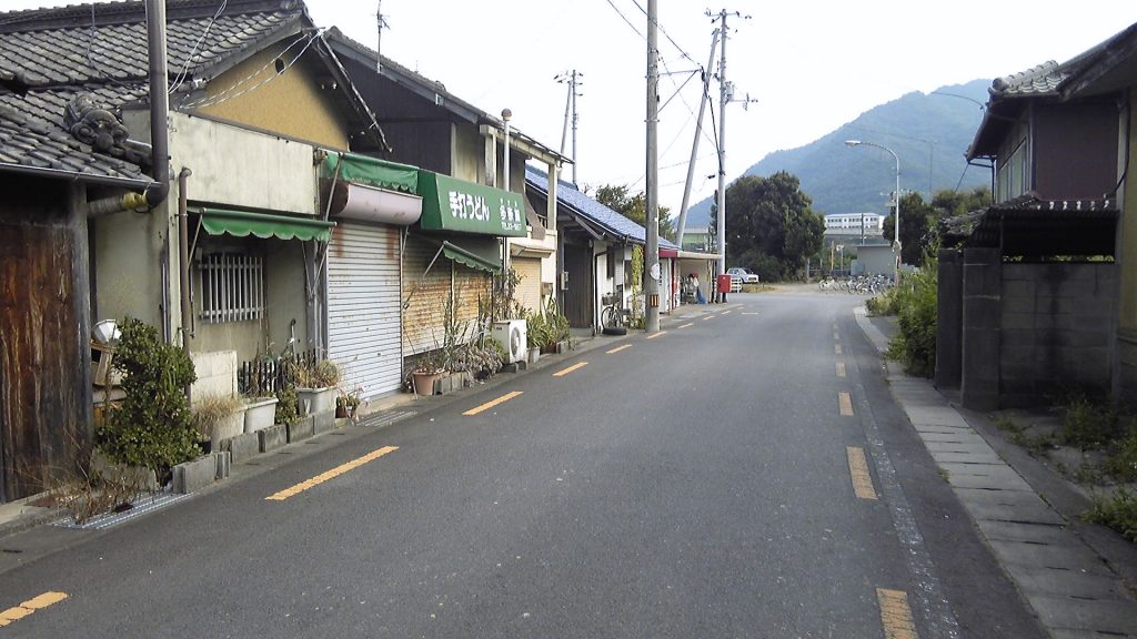前回到達した琴電琴平駅前にある大宮前バス停で下車、JR線路の反対側にある琴平パークホテルまで歩く。風情のある古い商店が続く通りを、少し歩いて国道319号に出る。線路の金毘羅様側は観光客ご用達の街だが、こちら側は住民向けの街である。