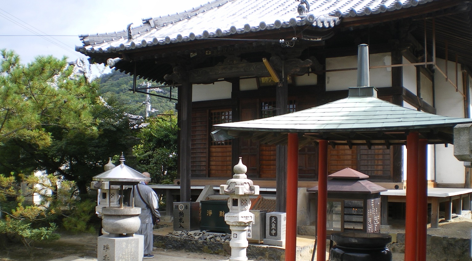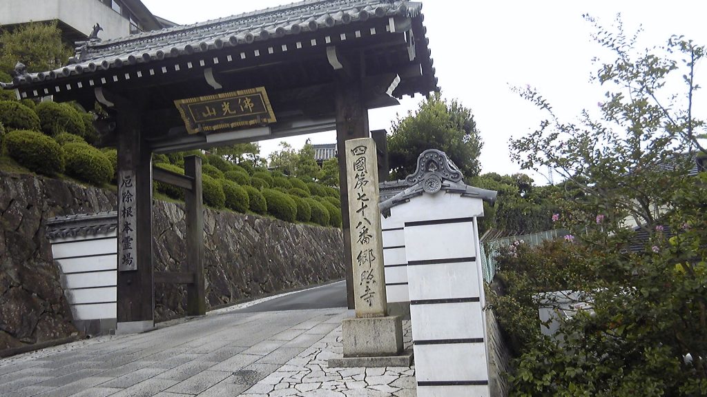 午前8時出発。琴平から善通寺に戻る道は、昨年の金毘羅参りで歩いたコースの逆ルートである。JR善通寺駅まで約1時間、次の駅が金倉寺で、駅から少し歩くと七十六番札所である。さすが弘法大師のおひざ元で、七十一番弥谷寺から七十八番郷照寺まで善通寺から半径数km以内に固まっている。