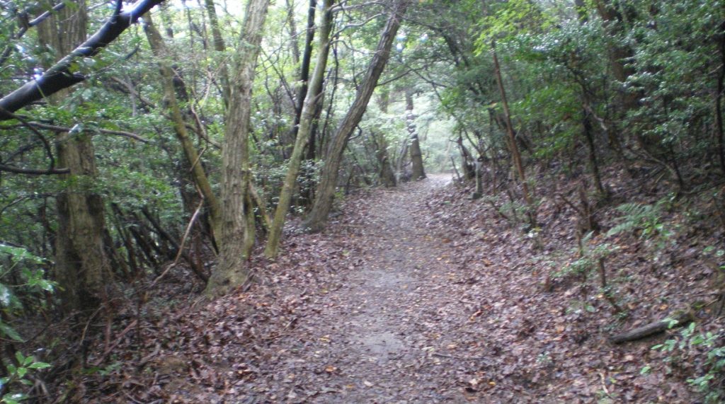 道は国分寺から登る登山道より狭く、急な坂道である。白峯寺から根香寺までは五色台の台地の上で登り下りはそれほどないと予想していたのだが、舗装道路と違って登山道は容赦なくアップダウンがある。