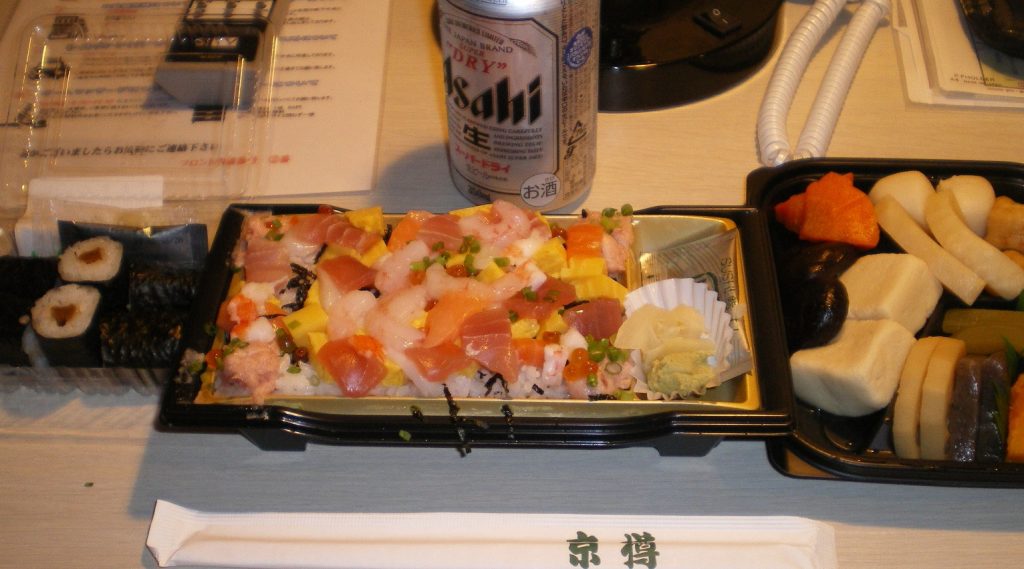 この日の夕食も三越のデパ地下で半額のちらし寿司。ハードスケジュールの上にこういう食事は、後から考えると体調を崩す大きな要因となったかもしれない。