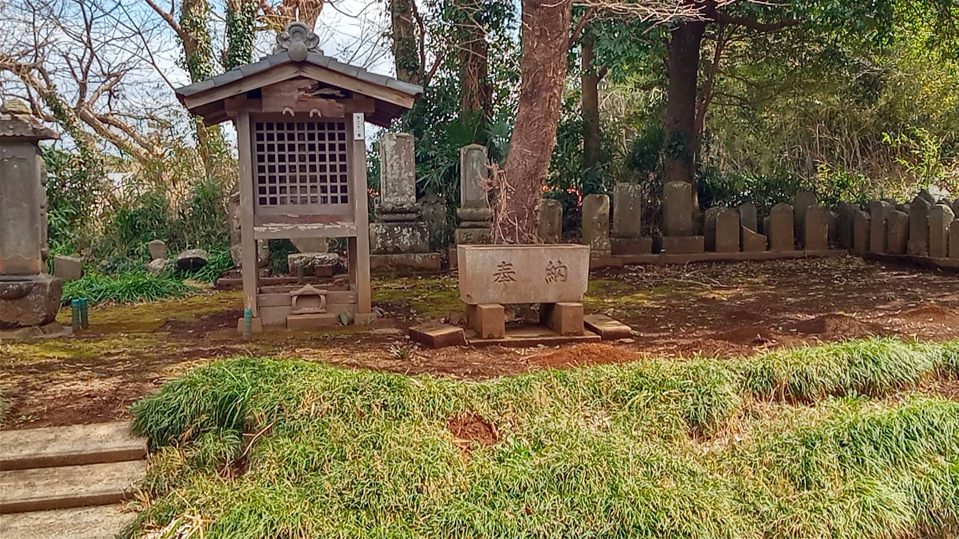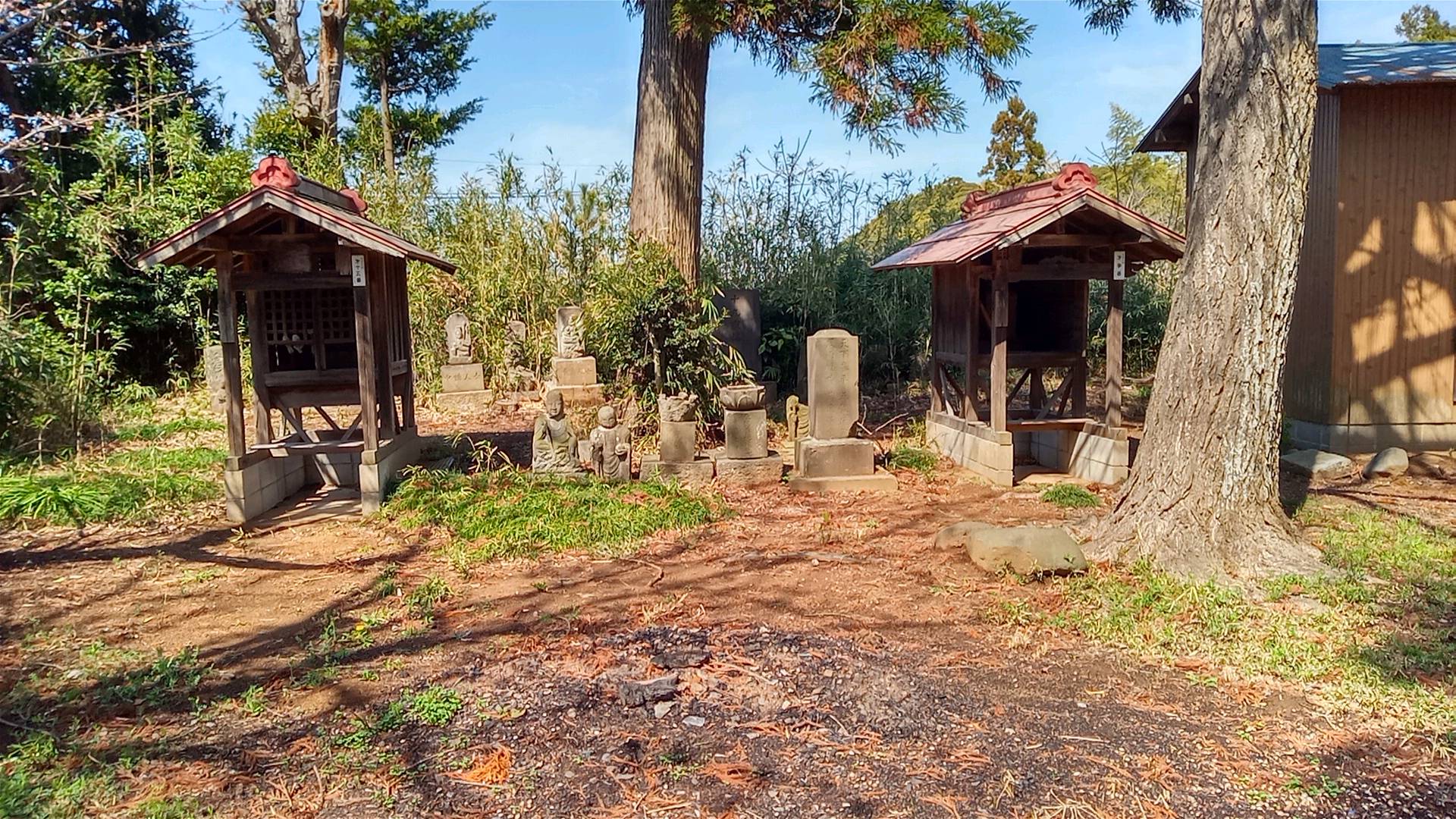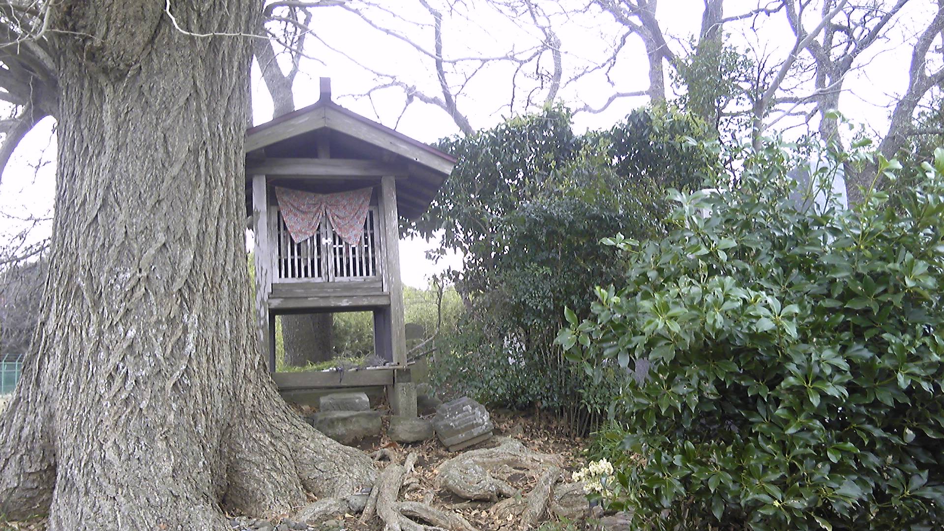 五ノ神堂の番外札所は、神社から50mほど離れた共同墓地の一角、大木の根元に置かれている。この日打ち止めのお参りであるので、お数珠を出して念入りに手を合わせる。