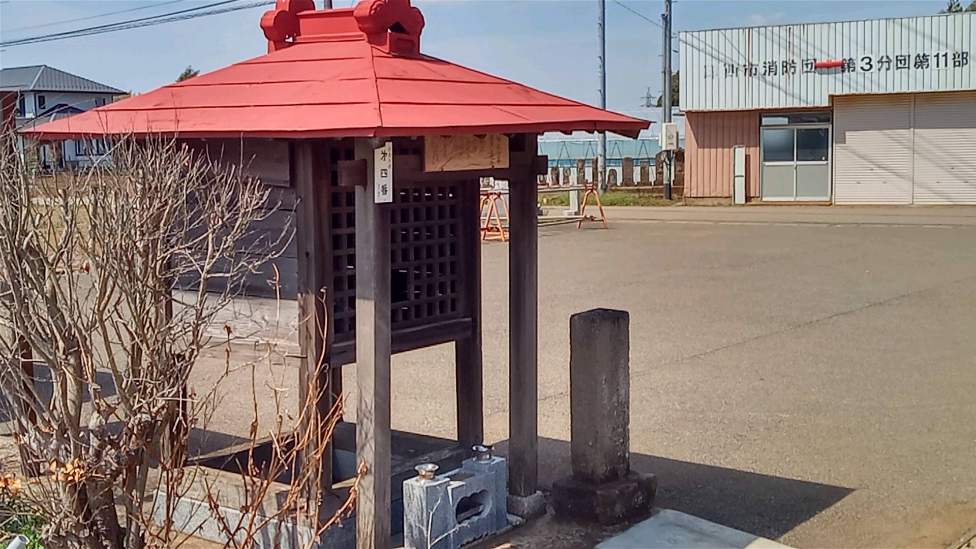 四番西光寺は鹿黒集会所の隣にある。集会所の敷地内に古い碑が建っているし、後ろは消防団の施設。印西札所ではよくある立地条件である。
