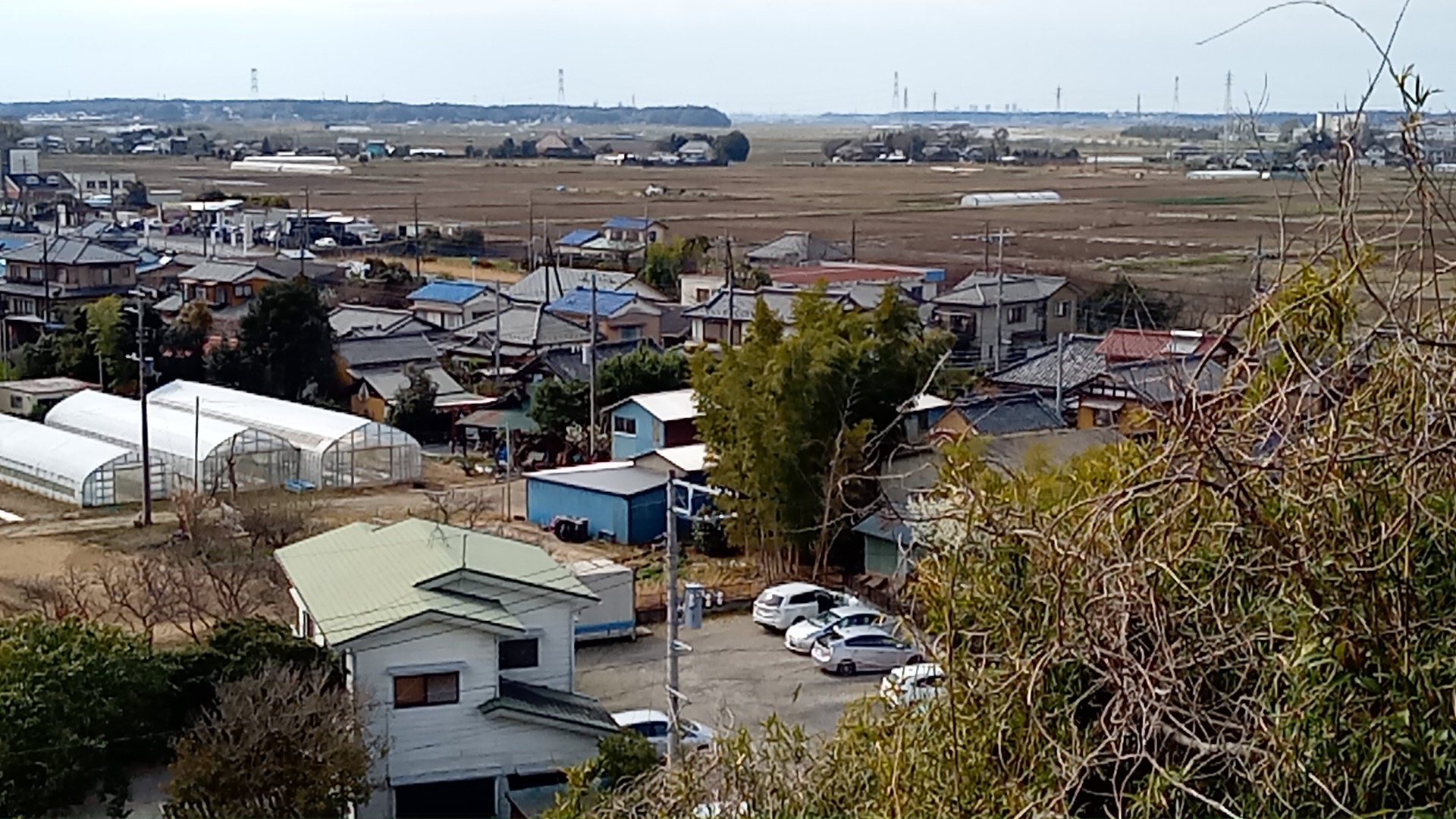 周囲に畑がまだ残っているが、すぐ近くに工場の大きな建物が見えているし、バス通りも近い。ニュータウン区域ではなく市街化調整区域のはずだが、新築の住宅地も近くにある。雰囲気も田舎というより街中である。