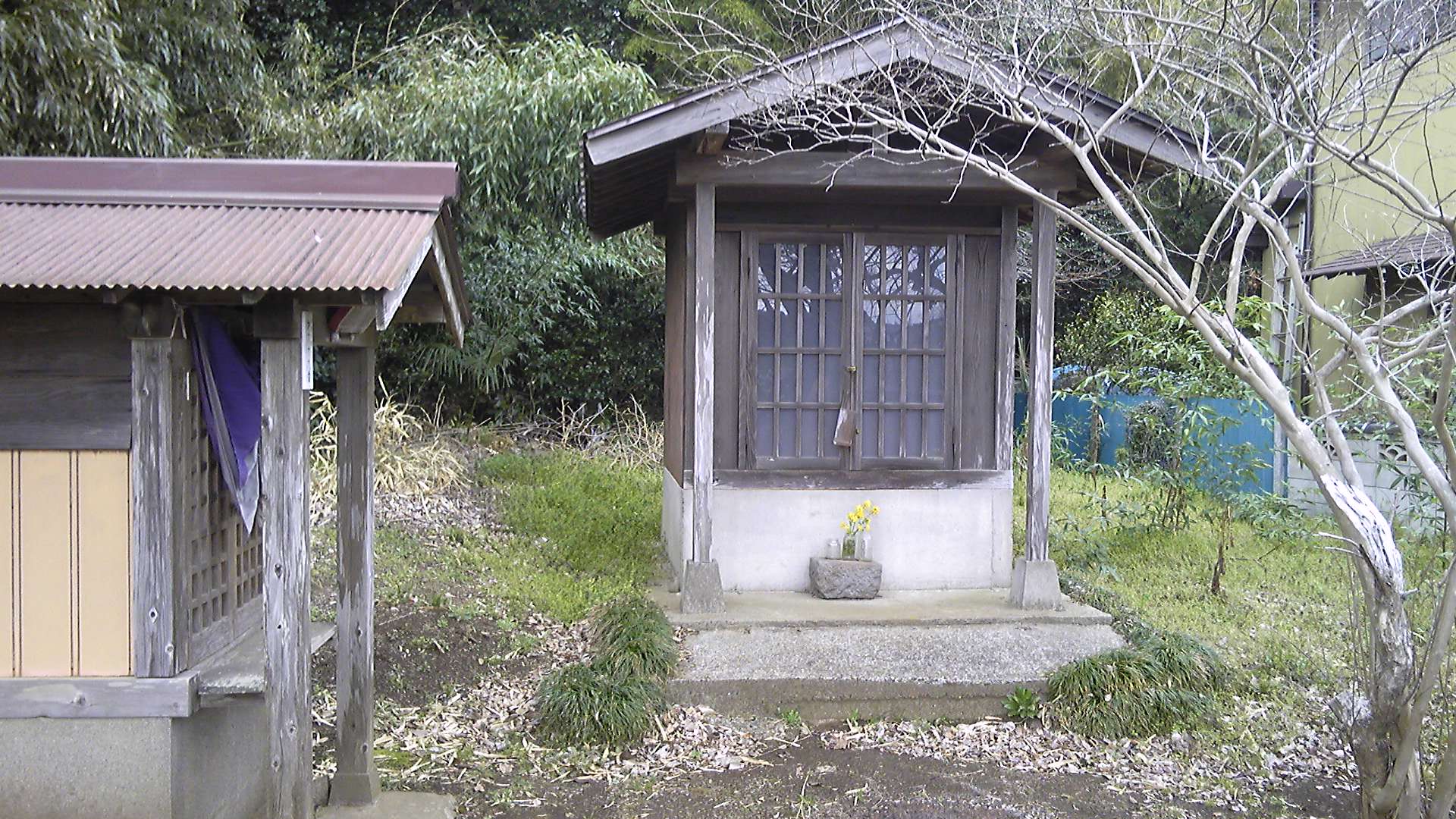観音堂の次は番外札所の猫屋敷、弥陀堂という順路である。猫屋敷はすぐ近くの八坂神社脇の共同墓地の中、弥陀堂は先週説明した1kmほど離れた萩原新田にある。
