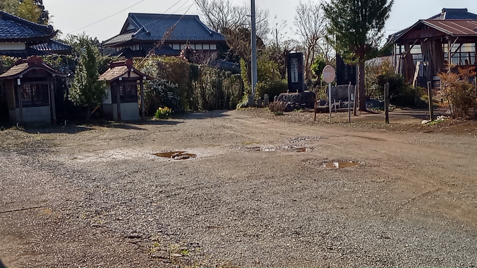 サバゲーフィールドの少し先が師戸集落の中心である。変則の五差路になっていて、左(東)に進むと岡台地区から印旛沼に下り、右(西)に進むと西台地区から師戸川に至る。1/25000図では「西谷」となっているが、土地の人は「西台」と呼ぶそうだ。地形的にも、西側の台地である。