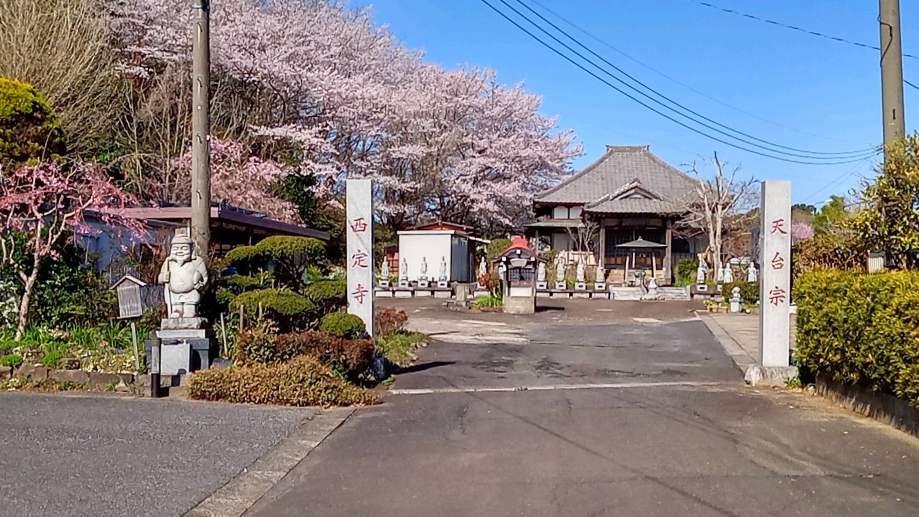 六十二番西定寺。印旛沼湖畔に建ち、日当たりのいい立地にある。境内も広々としている。