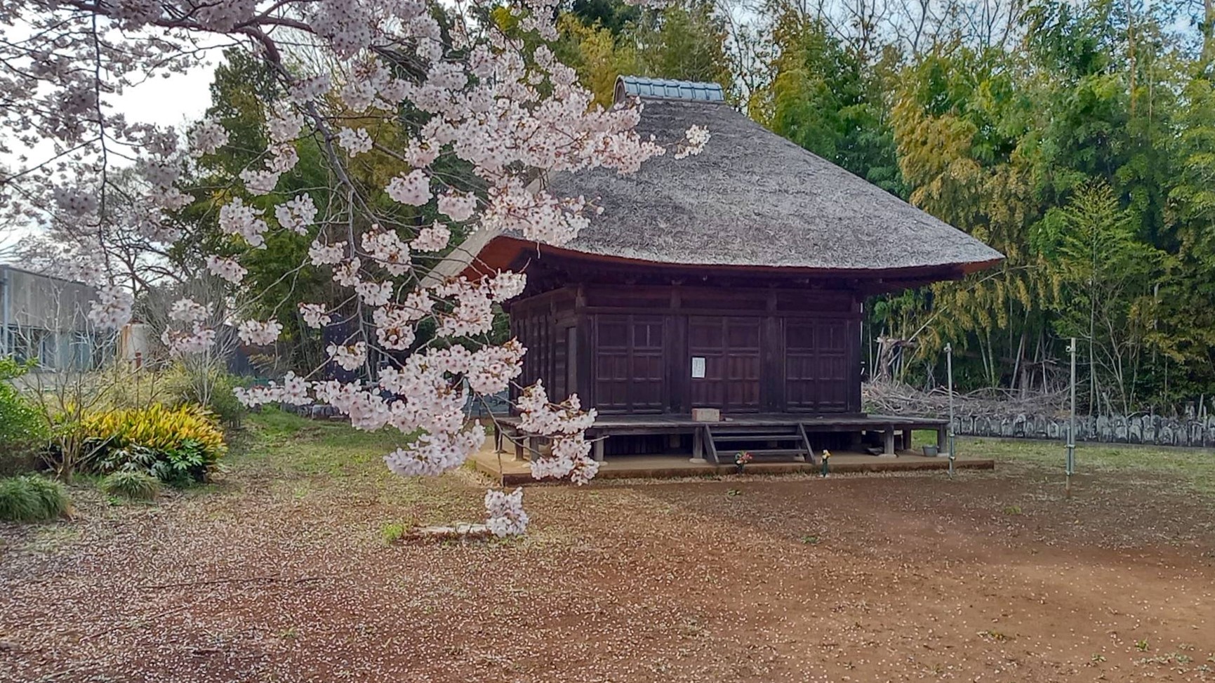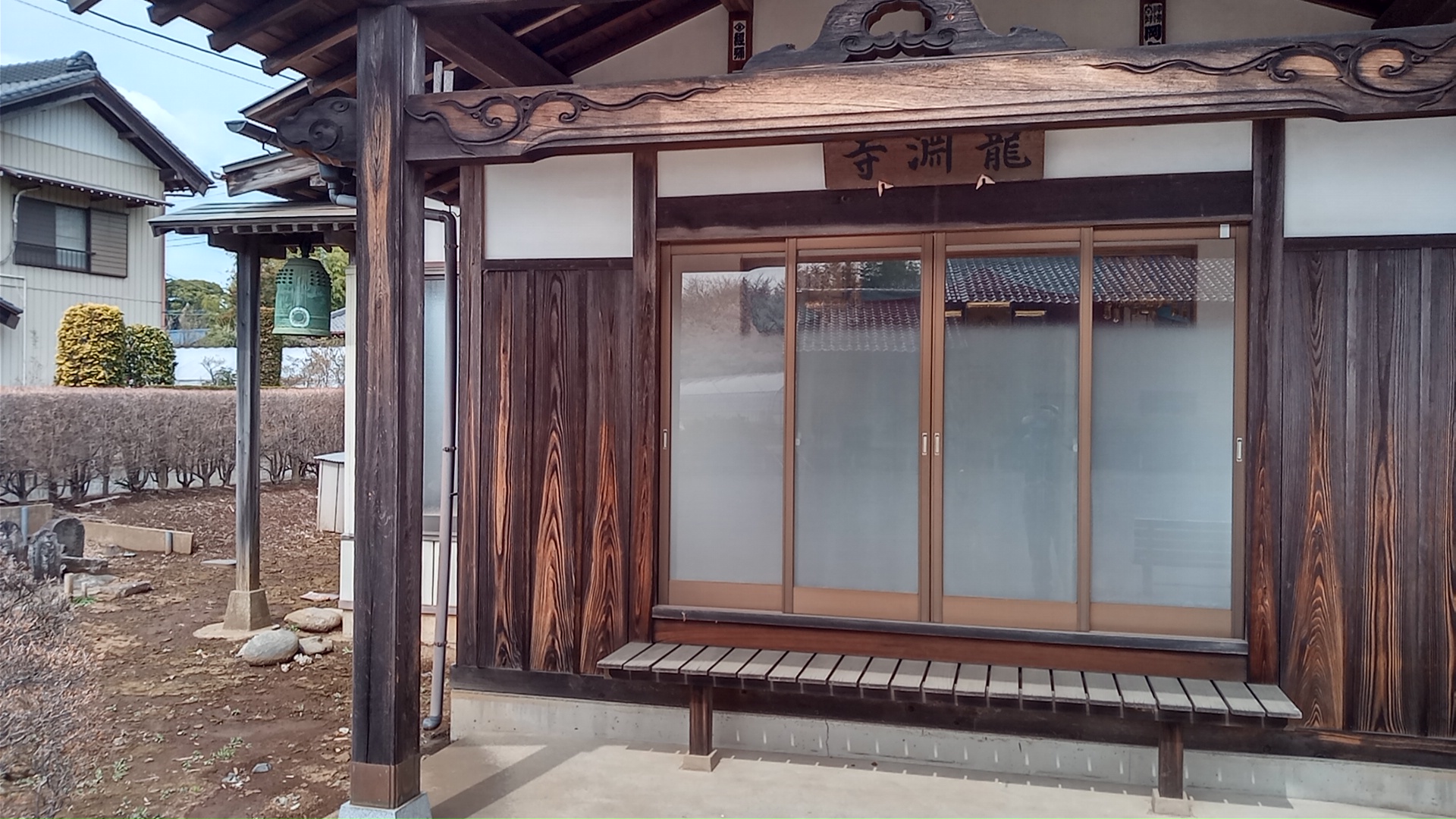 集会所の軒先に鐘が下がっている竜淵寺
