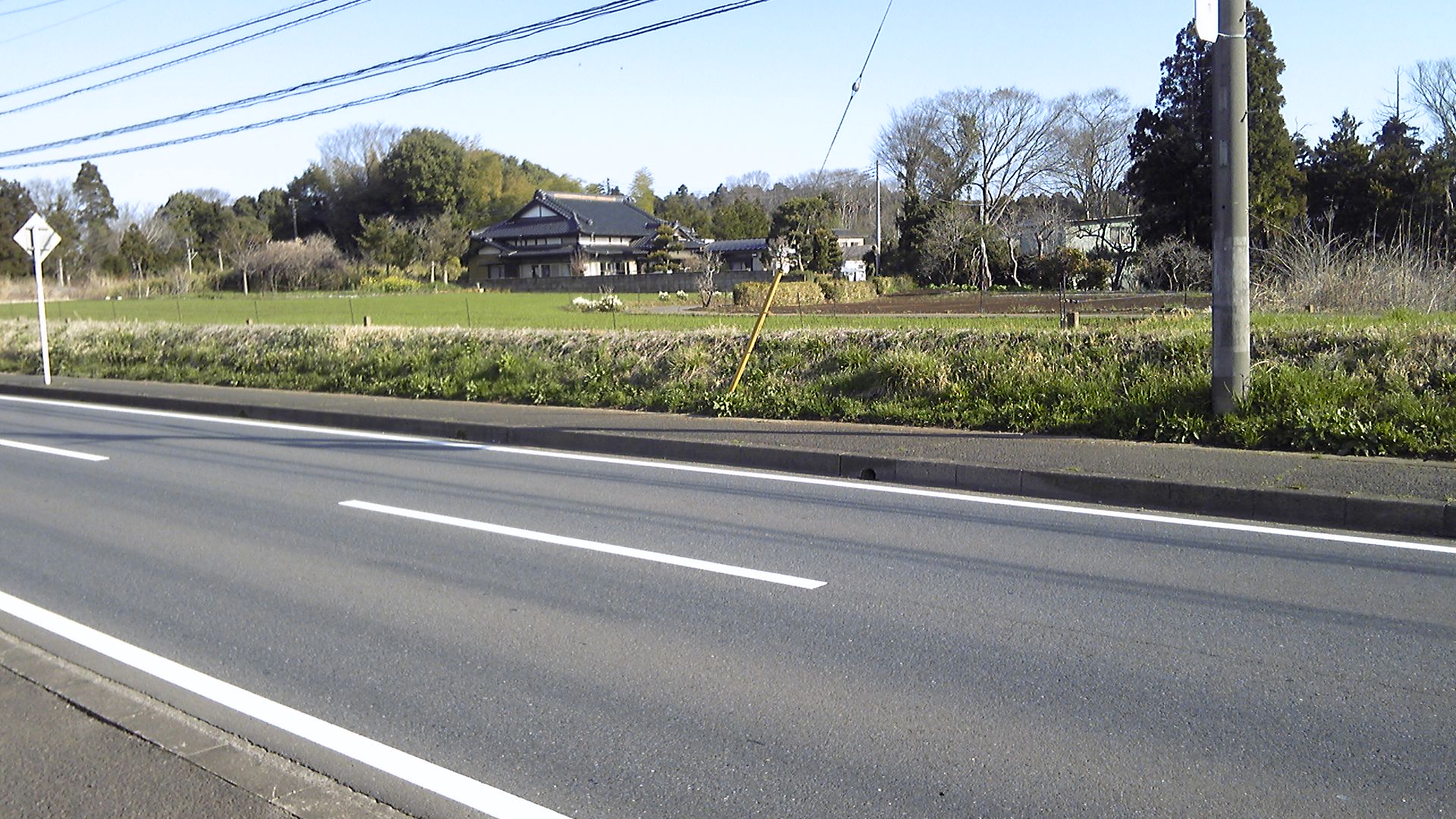 平賀支所から30分ほど送ってもらった道を戻る。旧印旛村役場から順天堂経由酒々井に抜ける道で、交通量が多い。しかし、左右が林で建物がないので、数百m先まで見通しが利く。かなり歩かなければならない。