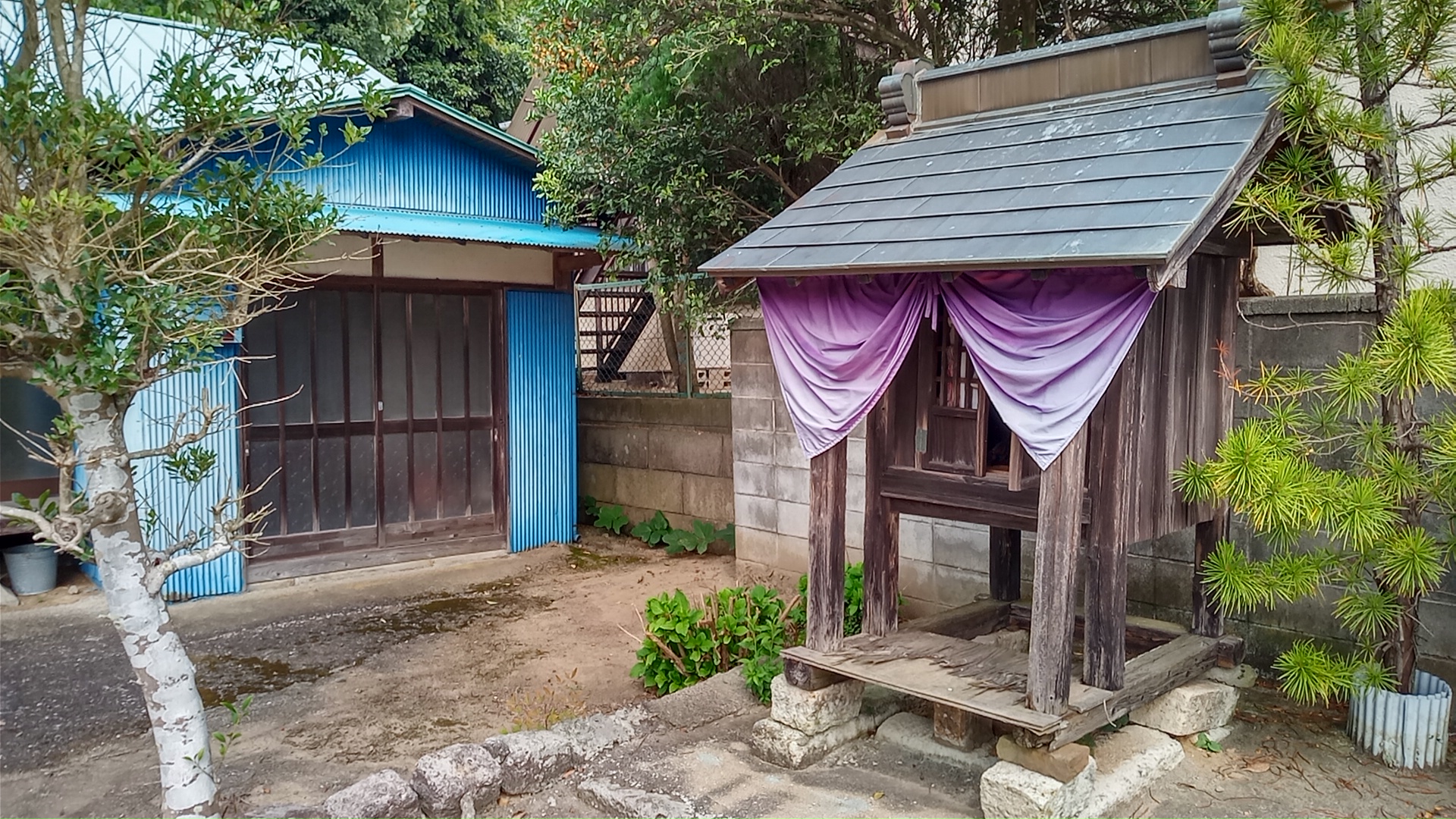 小堂は古びて傾いてしまっているけれど、きちんと手入れされていて、いまでも定期的にお参りされている様子である。集落の中なので、お参りもしやすいのだろう。