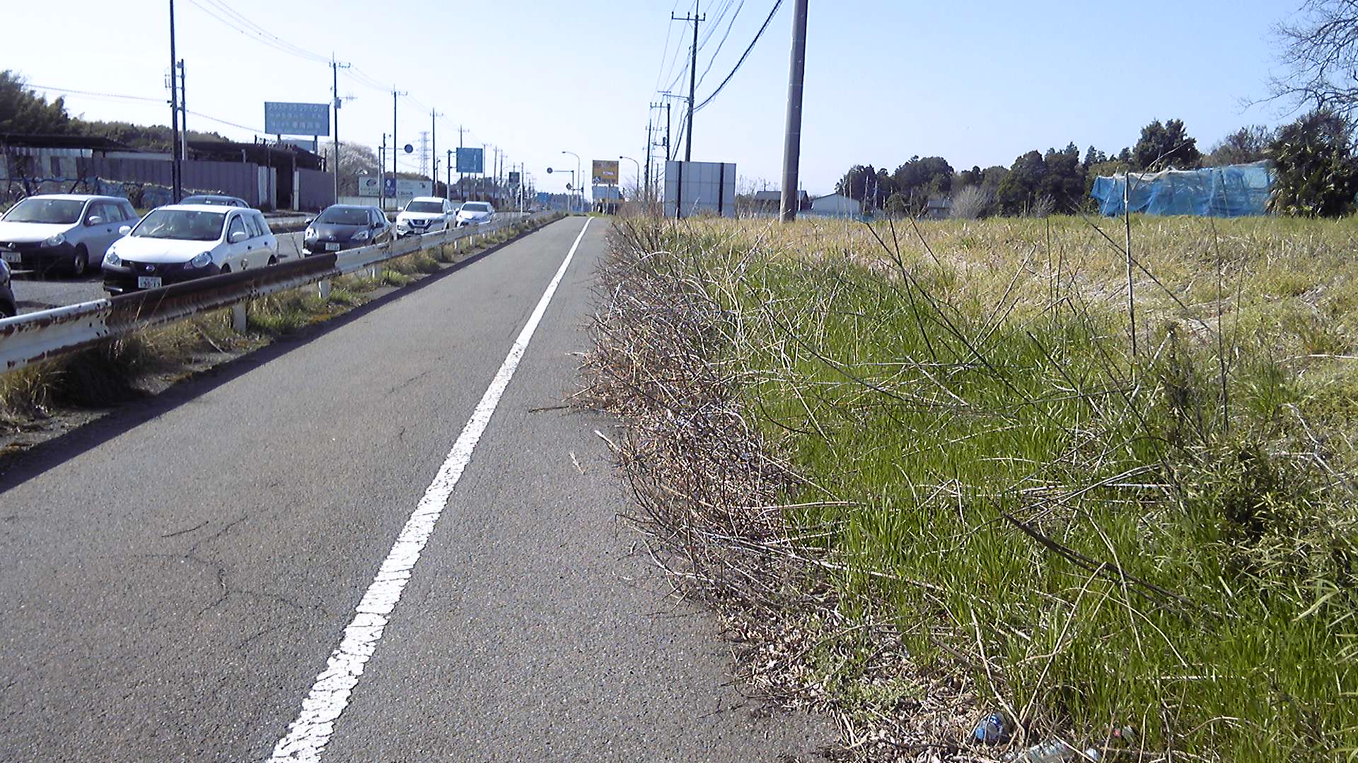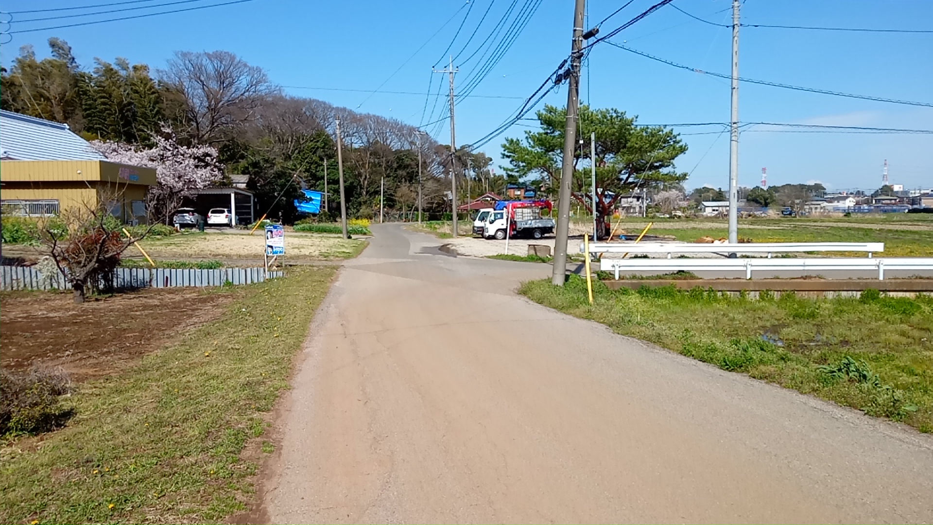 前面は開けて田畑もある。そして、はるか先に国道16号線が見える。おそらく、昭和30年代以降この風景は変わらないのだろう。16号線にはロードサイドの店も多いのだが、このあたりには背の高い建物は建たないようである。