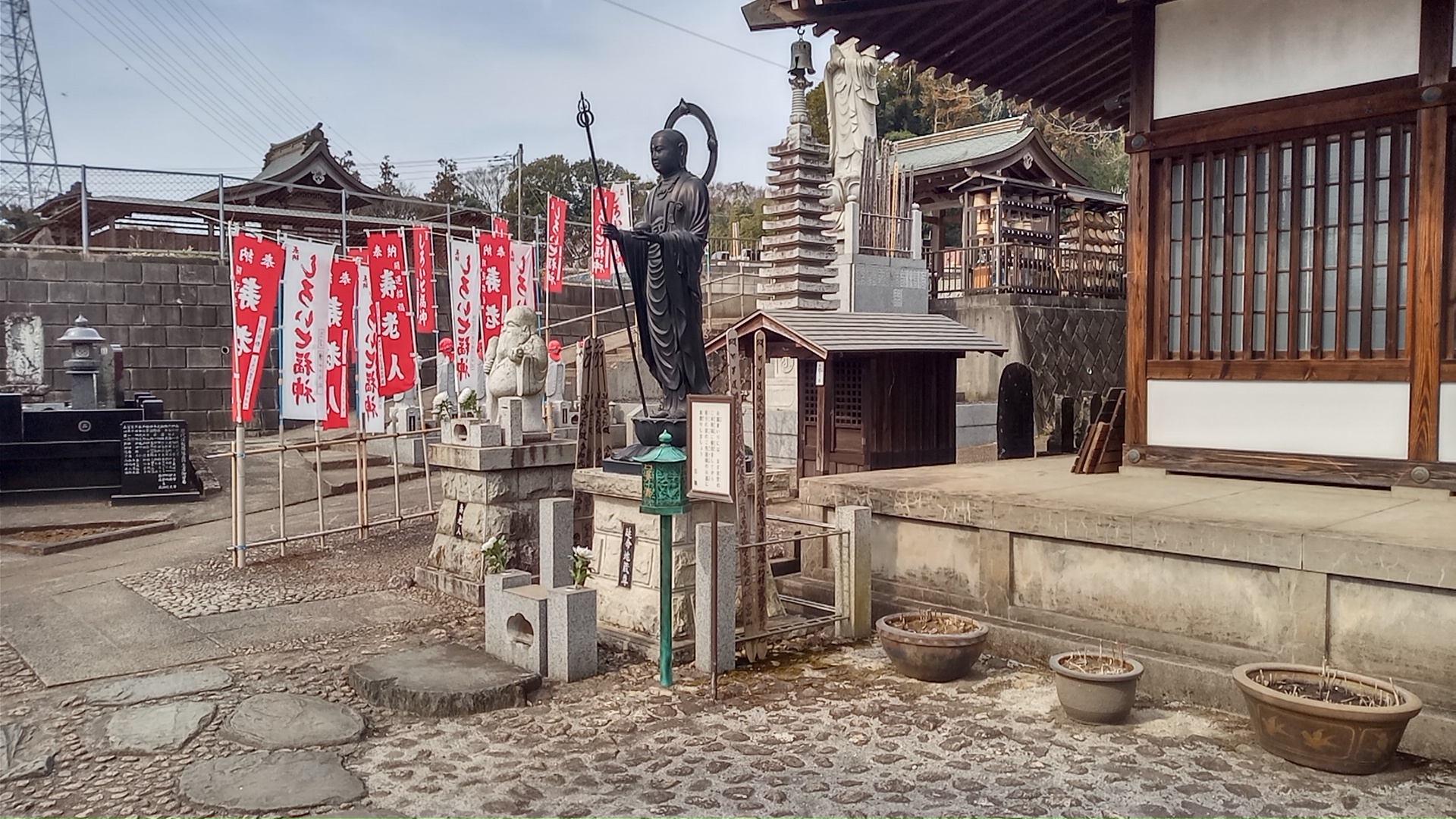 札所と大師像だけでなく、庚申塔や記念碑も多くある。10mも歩けば交通量の多い木下街道がある場所に、こうした施設が残っているのは驚きである。周囲はほぼ住宅地で、かつて農村集落だった面影はない。