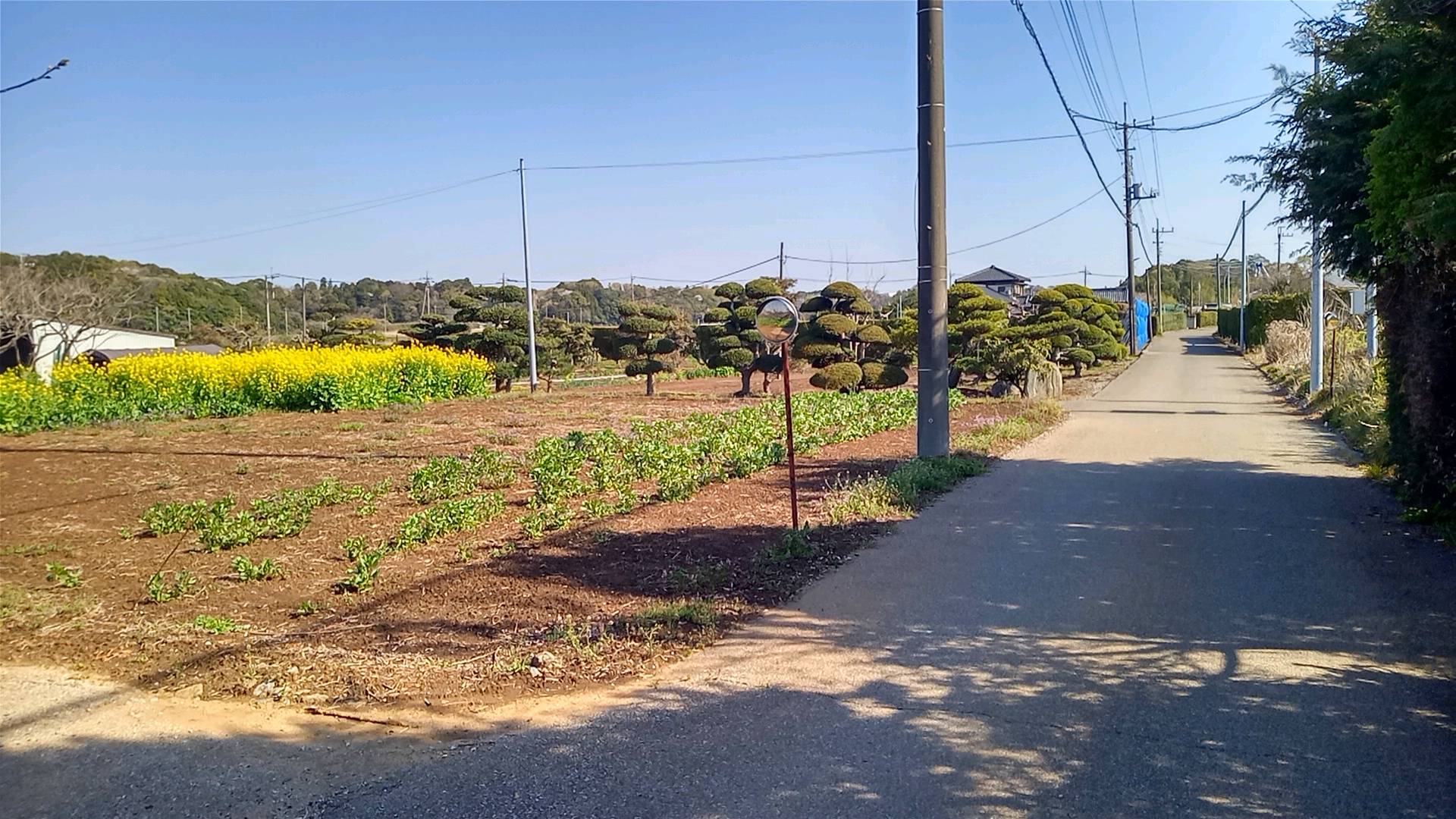 車通りの多い白井工業団地から100mほど入るだけで昔ながらの農村の道になる。とはいえ、車や重機の音は聞こえてくる。