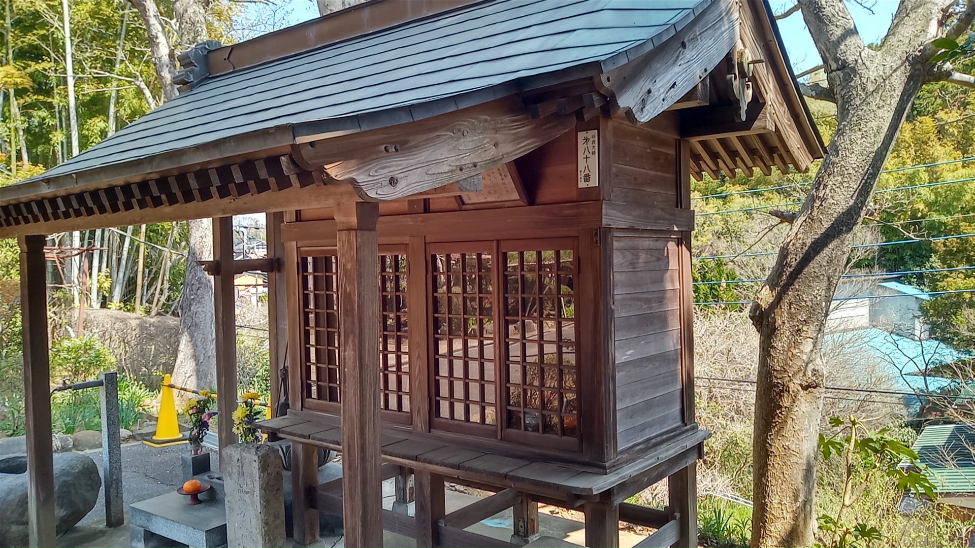 ごく近所にあるにもかかわらず泉倉寺の管理ではないのか、泉倉寺が整然として明るいのに対し、全体に整備されていない。札所も泉倉寺のものよりかなり古い。傍らの古い建物は、かつての集会所だったものだろうか。