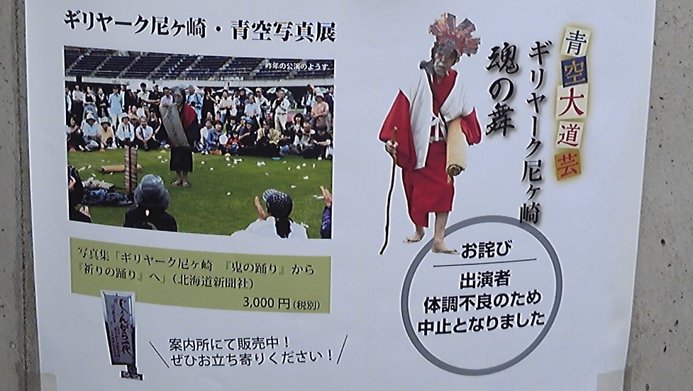 ギリヤーク尼ヶ崎師匠は昨年来体調を崩していて、毎年恒例であったGWの関西公演、初夏の横浜六角橋公演は中止になってしまった。夏の北海道公演も中止ということであったが、7月末になってファンブログに、8月21日に函館でやるらしいとの情報が掲載された。