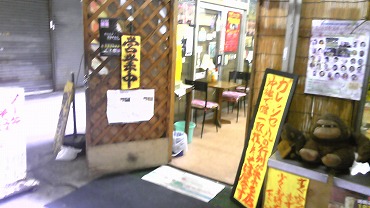 ジャッキーステーキハウス入口。横に貼ってあるのが「力がつきます、ジャッキー」ポスター。