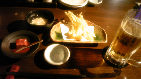 とりあえずお願いしたのは、豆腐よう、島らっきょうのてんぷらにオリオン生ビール。この後、品揃え豊富な泡盛でいい気持ちになりました。