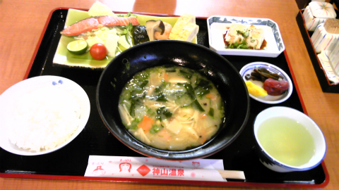 お湯は特に匂いもなく、刺激もないが、前日まで2泊続けてビジネスホテルのユニットバスだったので、ゆっくり手足を伸ばせる大きな湯船は格別であった。ゆっくりさせていただいたおかげで、翌朝1時間にわたる朝のお勤めで正座したけれども、ぶざまな真似をしなくで済んだのは何よりだった。