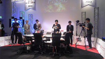 2013AJPCシニア、決勝テーブルに向かう。Michael Buffer並みのコールはちくわさん、TDはっちゃんもいます。